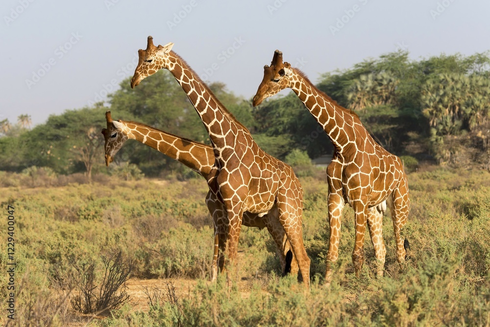Fototapeta Reticulated giraffes (Giraffa reticulata camelopardalis), Samburu National Reser
