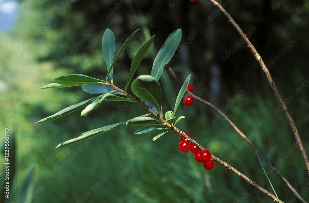 Fototapeta Spurge laurel - February daphne - with berries - Daphne mezereum Germany