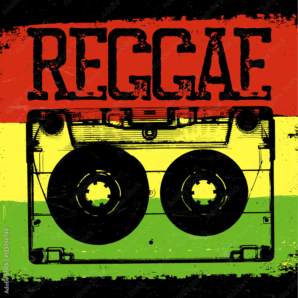 Fototapeta Audiocassette and Reggae lettering. Vector reggae design with au