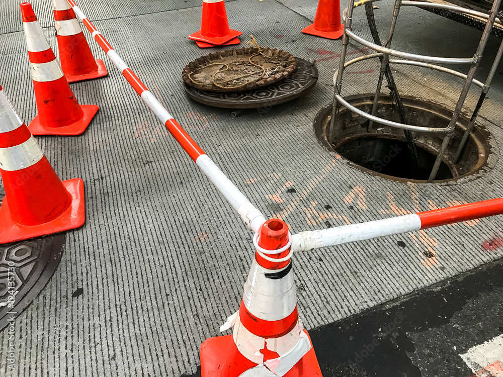 Fototapeta Site of road repair is guarded off. New York City.