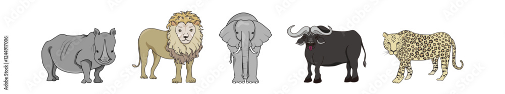 Fototapeta アフリカの野生動物ビッグ5、象、ライオン、ひょう、バッファロー、サイ