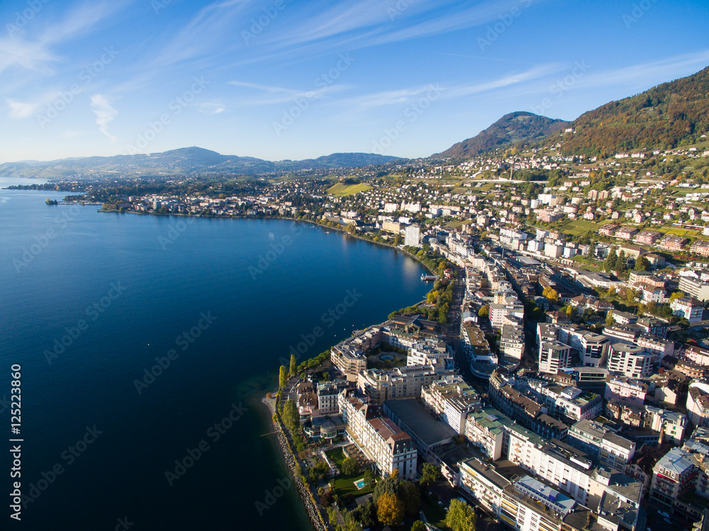 Fototapeta Aerial view of Montreux waterfront, Switzerland