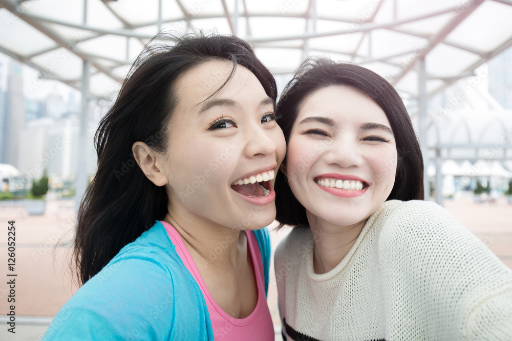 Fototapeta two woman selfie in hongkong