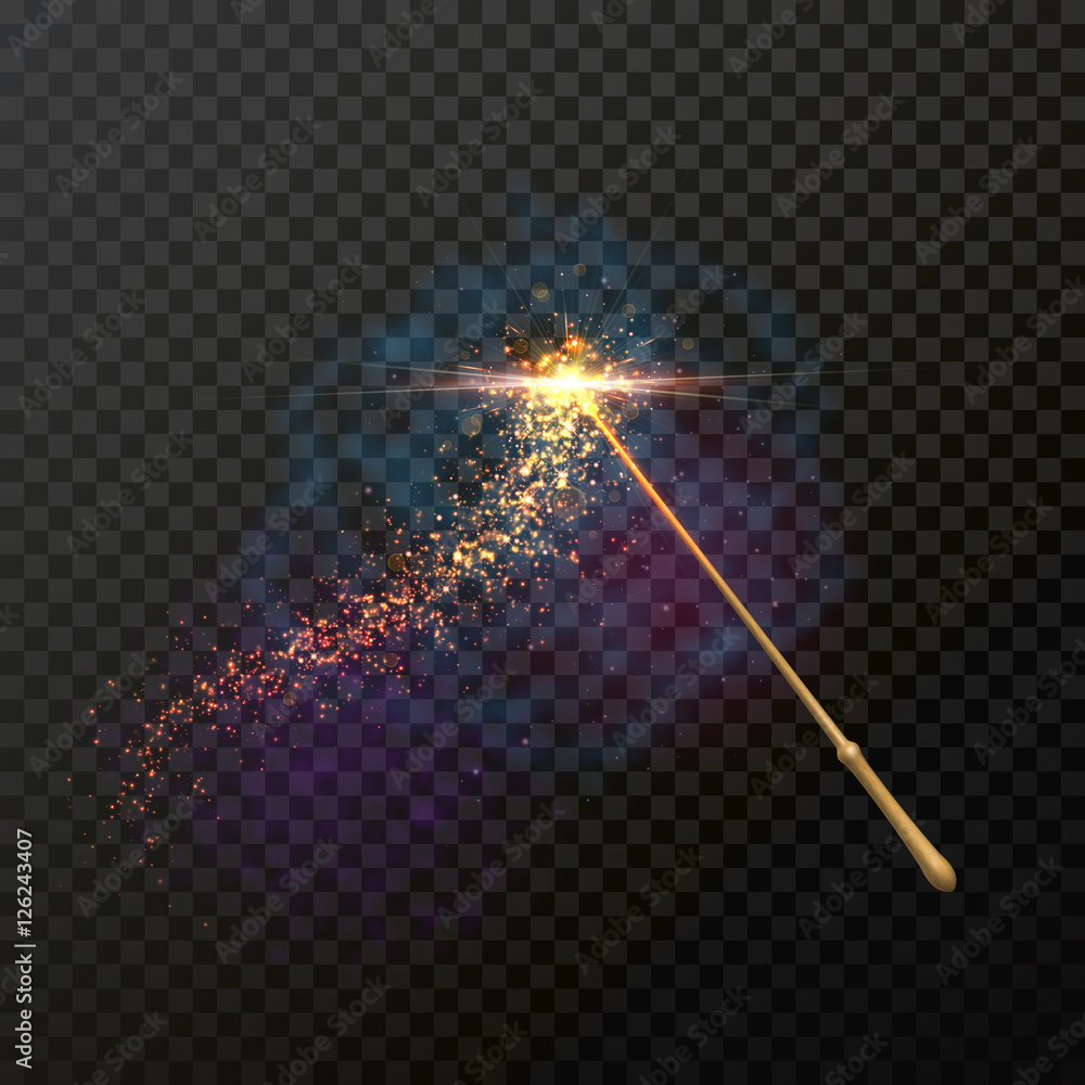 Fototapeta Magic wand with magical sparkle glitter light trail trace