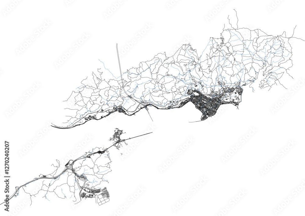 Fototapeta vector map of highway waterway and buildings in tsuen wan district in hongkong