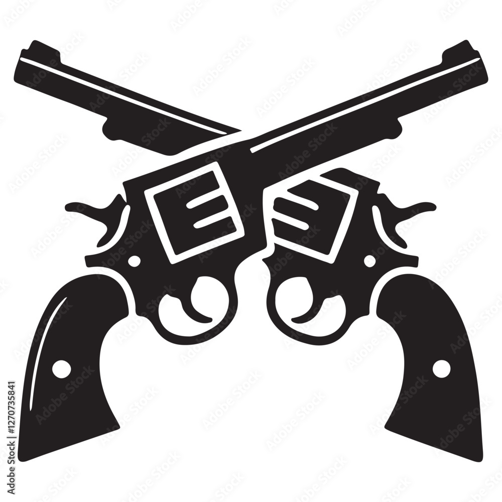 Fototapeta Two Crossed Revolvers Silhouette Guns Vector Illustration Stock Resource