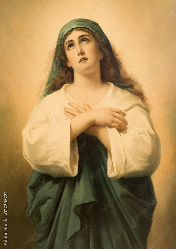 Fototapeta BERNOLAKOVO, SLOVAKIA, NOVEMBER - 9, 2016: Typical catholic image Virgin Mary printed in Berlin from end of 19
