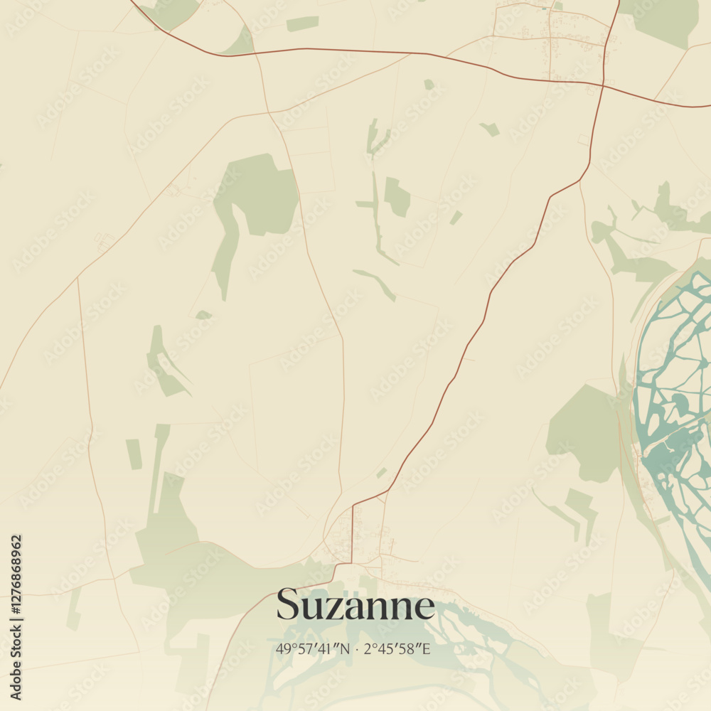 Fototapeta Vintage map of Suzanne, France.