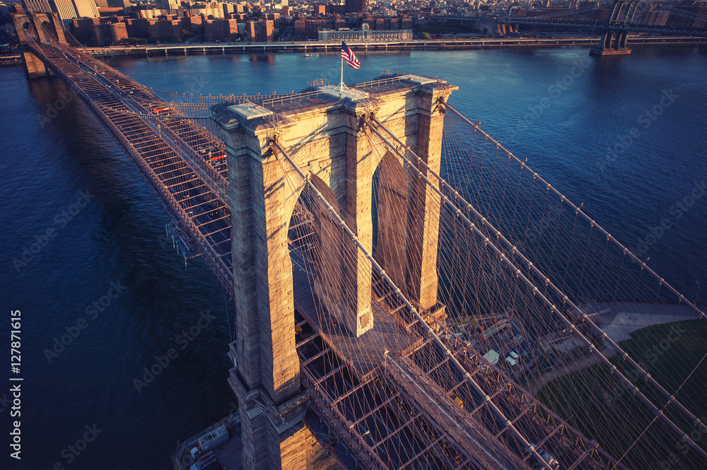 Fototapeta Brooklyn Bridge trom top - aerial view with East river