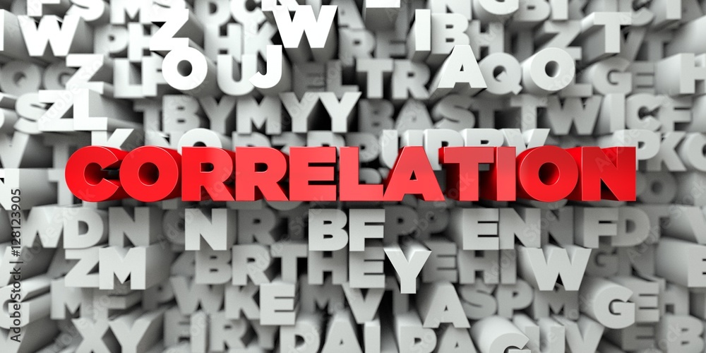 Fototapeta CORRELATION - Red text on typography background - 3D rendered royalty free stock image