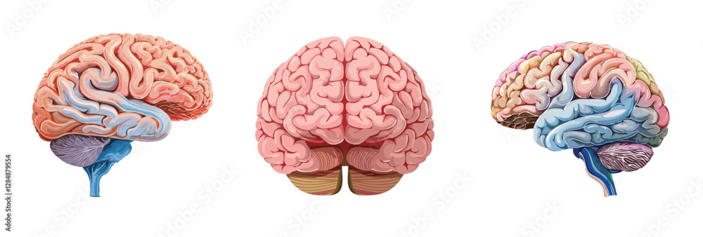 Fototapeta Human brain, front and side view, anatomy diagram vector illustration,人腦插圖,人腦 , This is not a medical-grade anatomical illustration; it's for illustrative purposes only