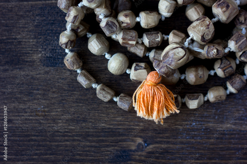 Fototapeta Japa mala rosary - hinduism and buddism rosary made from tulsi tree for hare kri