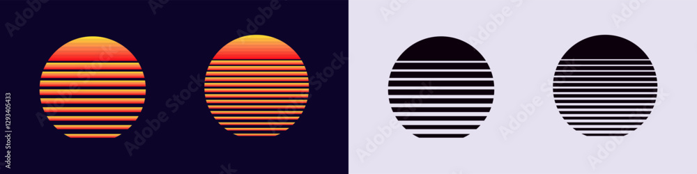 Fototapeta Two colorful ovals with horizontal stripes, mirrored by two black striped ovals on a split background