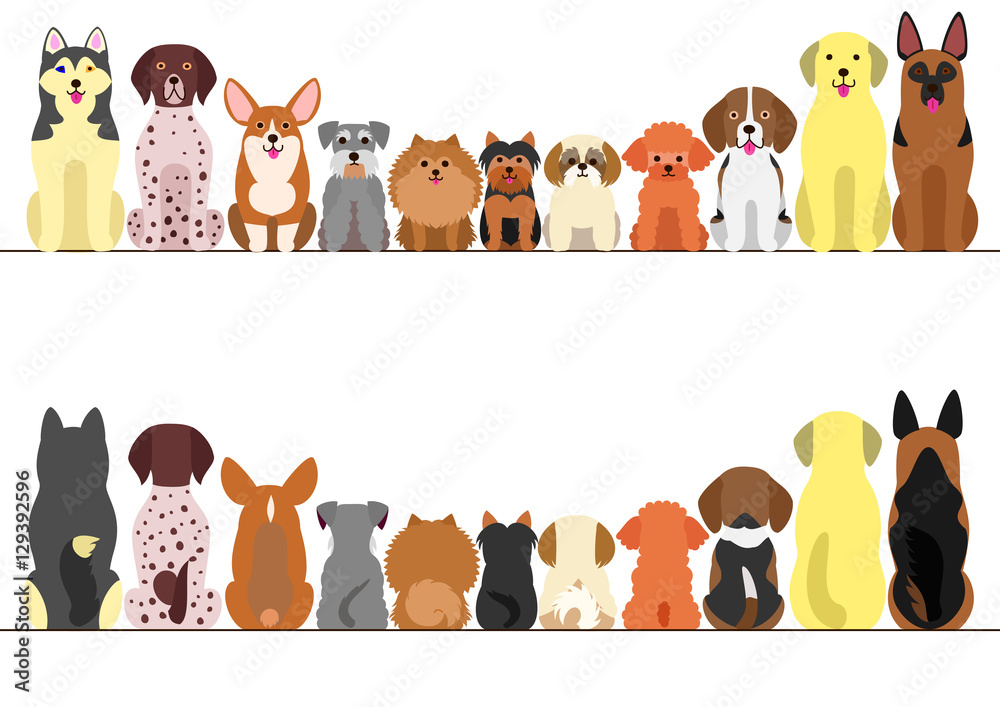 Fototapeta small and large dogs border set, front view and rear view