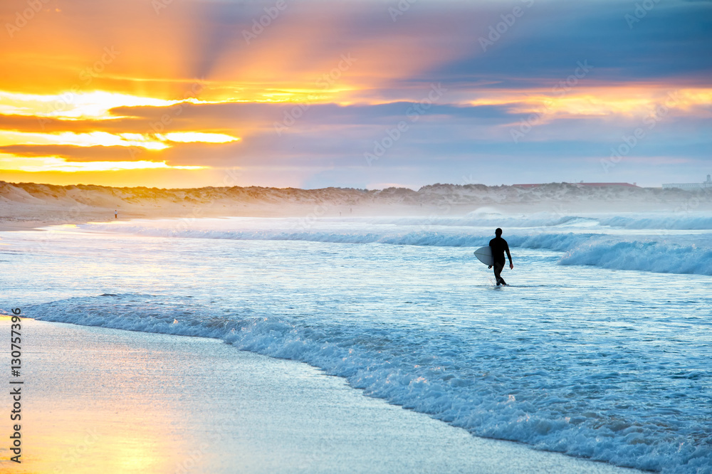 Fototapeta Surfer at sunset