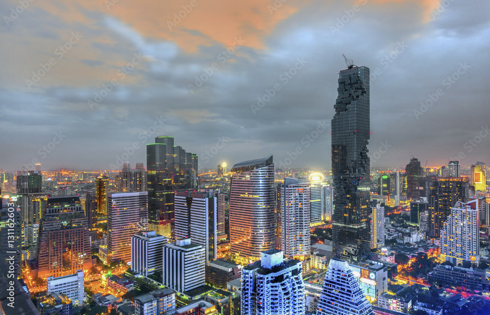 Fototapeta Aerial view of Bangkok modern city of commercials, trading areas, downtown with