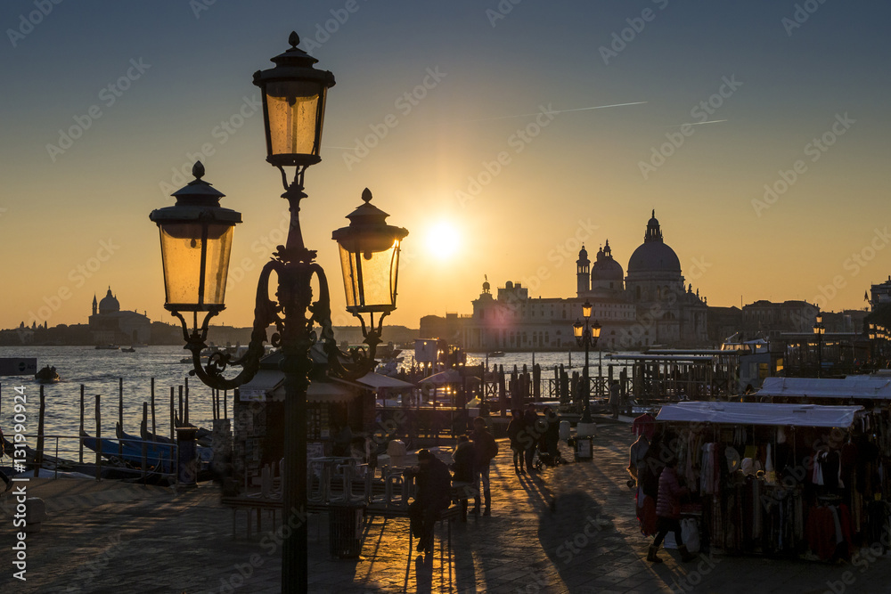Fototapeta Abendstimmung in Venedig, Blick über den Canale Grande zur Santa Maria della Sal