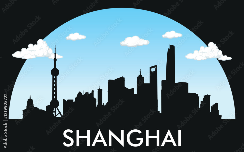 Fototapeta Silhouette of the city of Shanghai against the background of a bright sky with clouds
