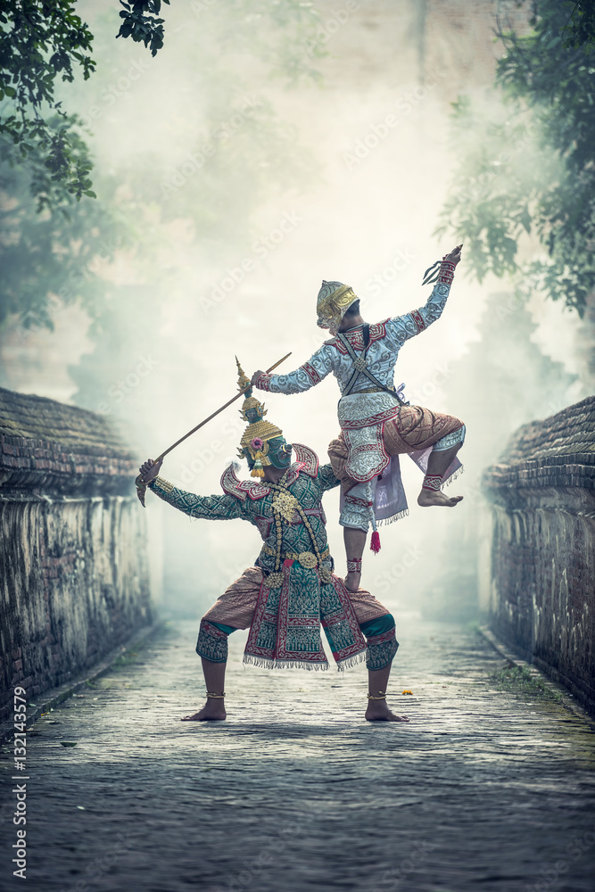 Fototapeta Khon is traditional dance drama art of Thai classical masked, this performance i