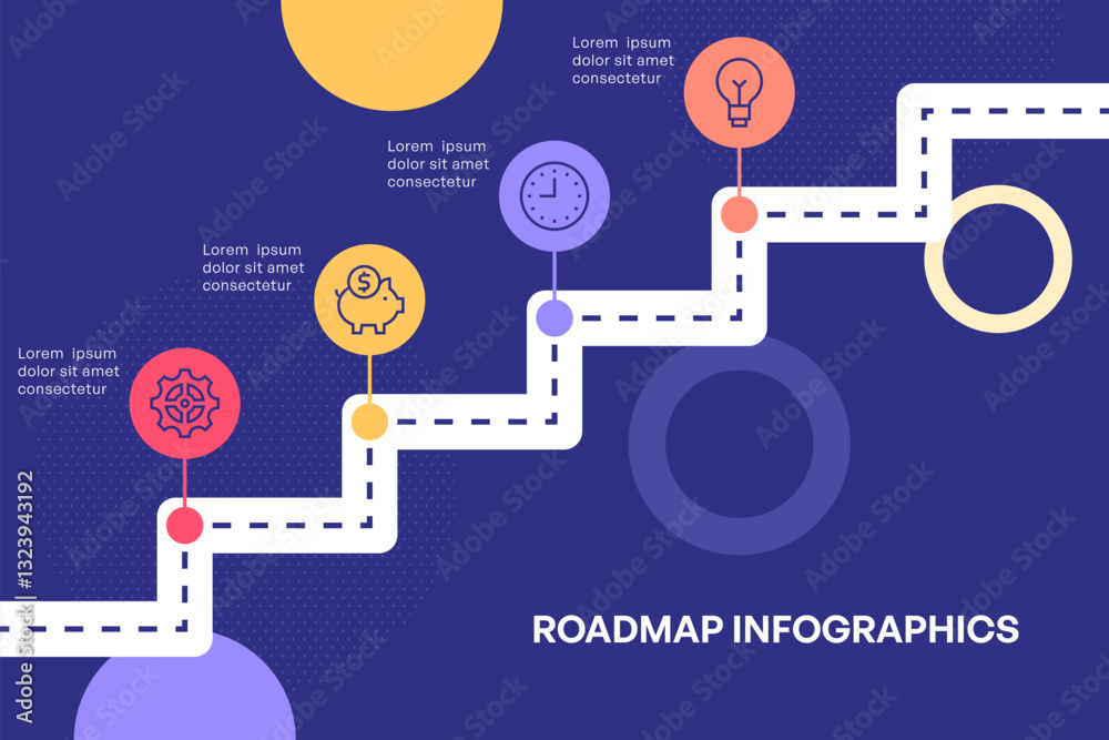 Fototapeta Stepwise Business Roadmap Infographic with Zigzag Path
