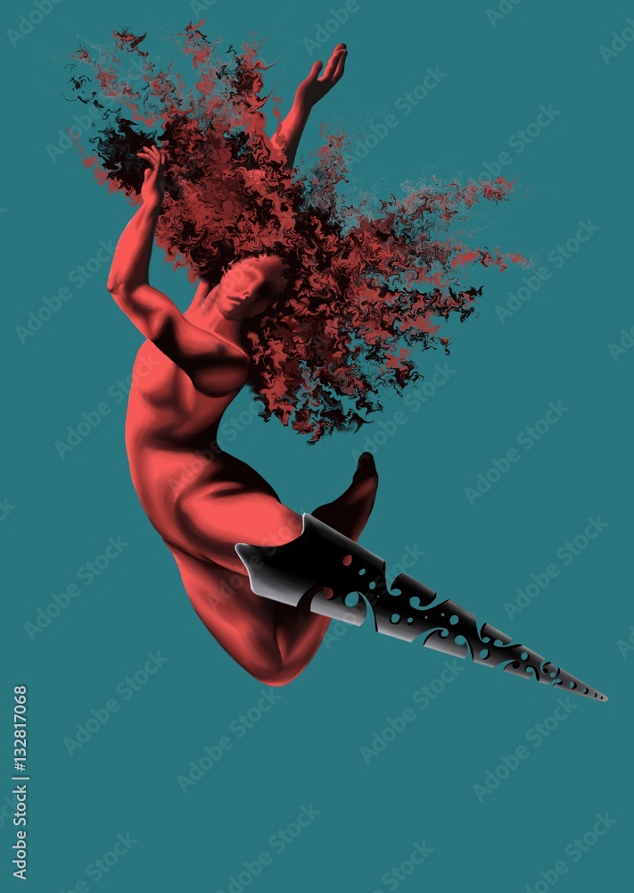 Fototapeta Une danseuse de danse contemporaine effectue un saut