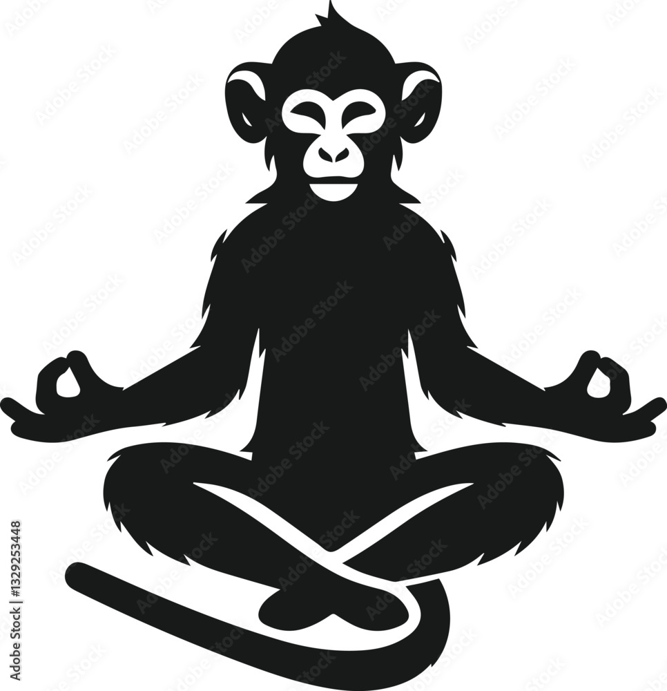 Fototapeta silhouette of yoga monkey sitting meditation
