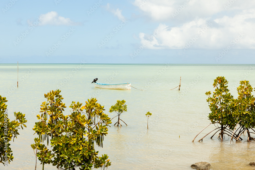 Fototapeta Bateau de pecheur à l'ancre sur l'ile Rodrigues