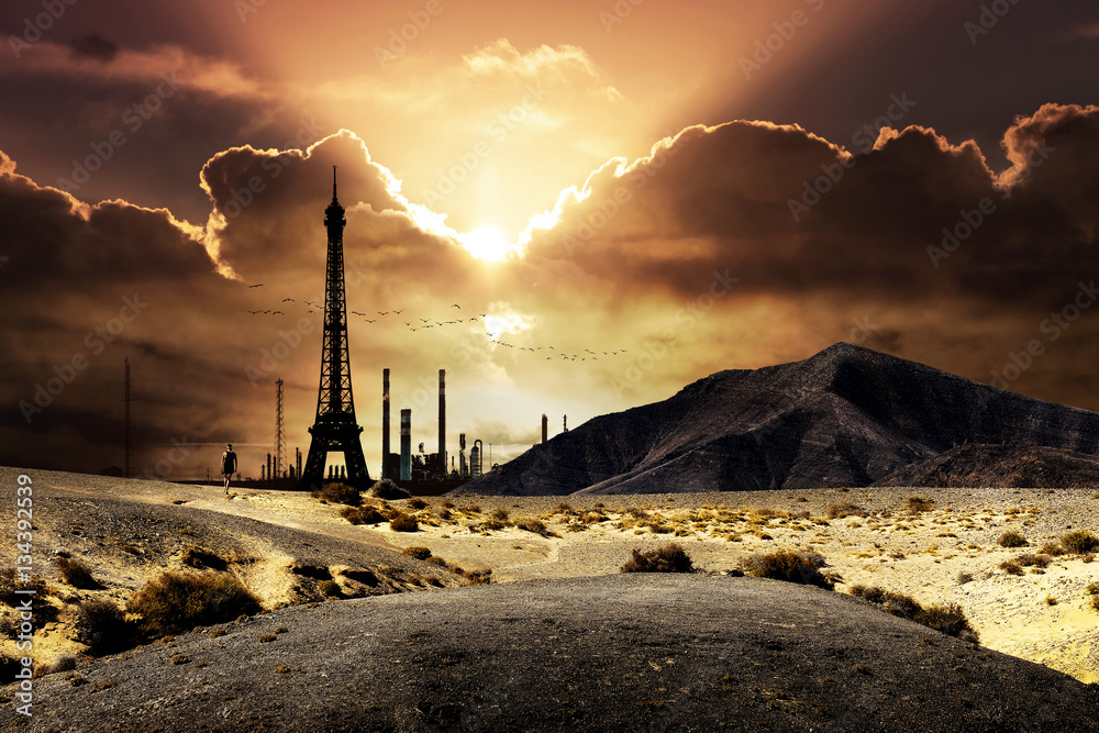 Fototapeta paris tour eiffel ville condition futur desert montagne séchere
