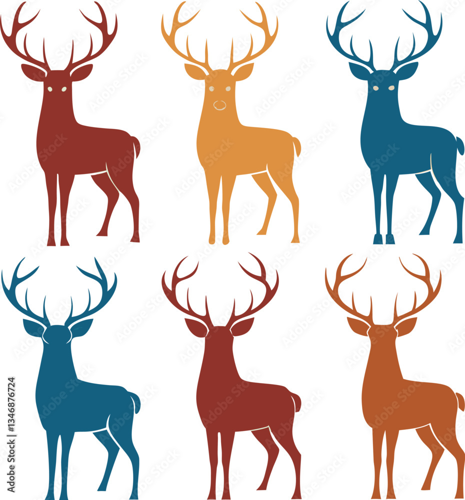 Fototapeta Deer Vector Set Illustration Featuring Stags, Elk, and Antelopes with Antlers and Silhouettes in a Wild Nature Theme