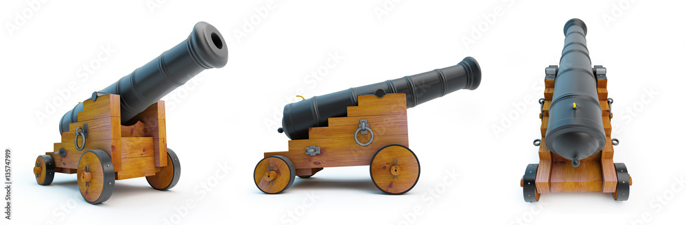 Fototapeta cannon old set on a white background 3D illustration