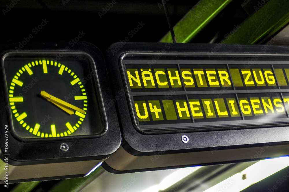 Fototapeta Vienna, Karlsplatz underground station, Metro, clock, luminous s