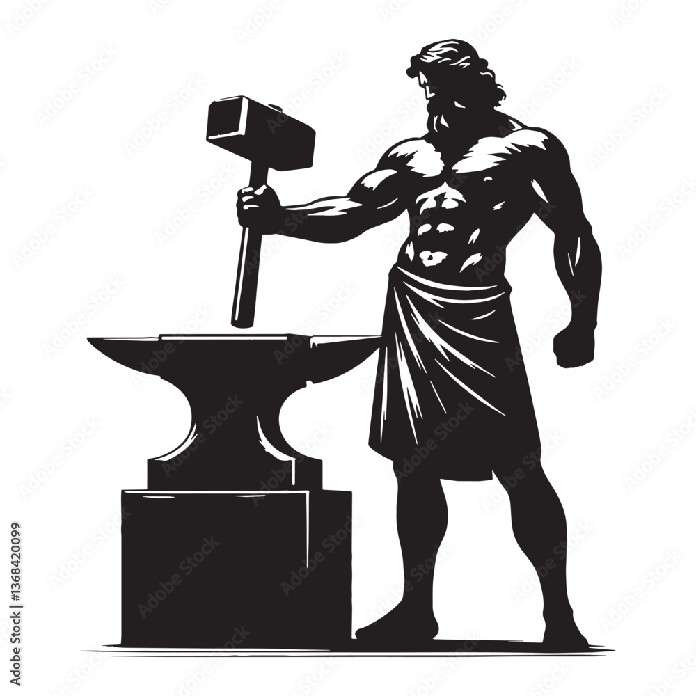 Fototapeta Legendary Hephaestus silhouette, creator of godly weapons - Hephaestus illustrat