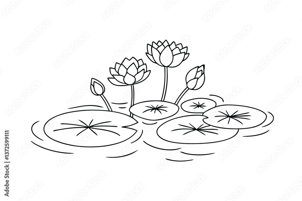 Fototapeta Water Lily Pond Elegant Line Art Botanical Illustration