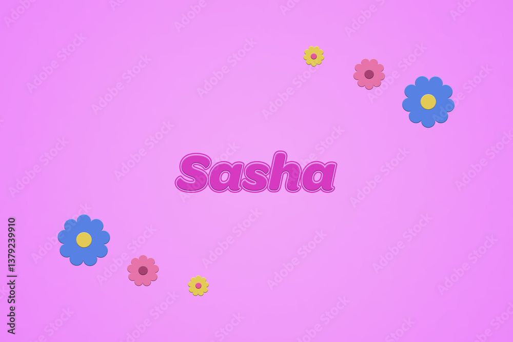 Fototapeta Sasha female girl name illustration in pink with blossoms, flowers