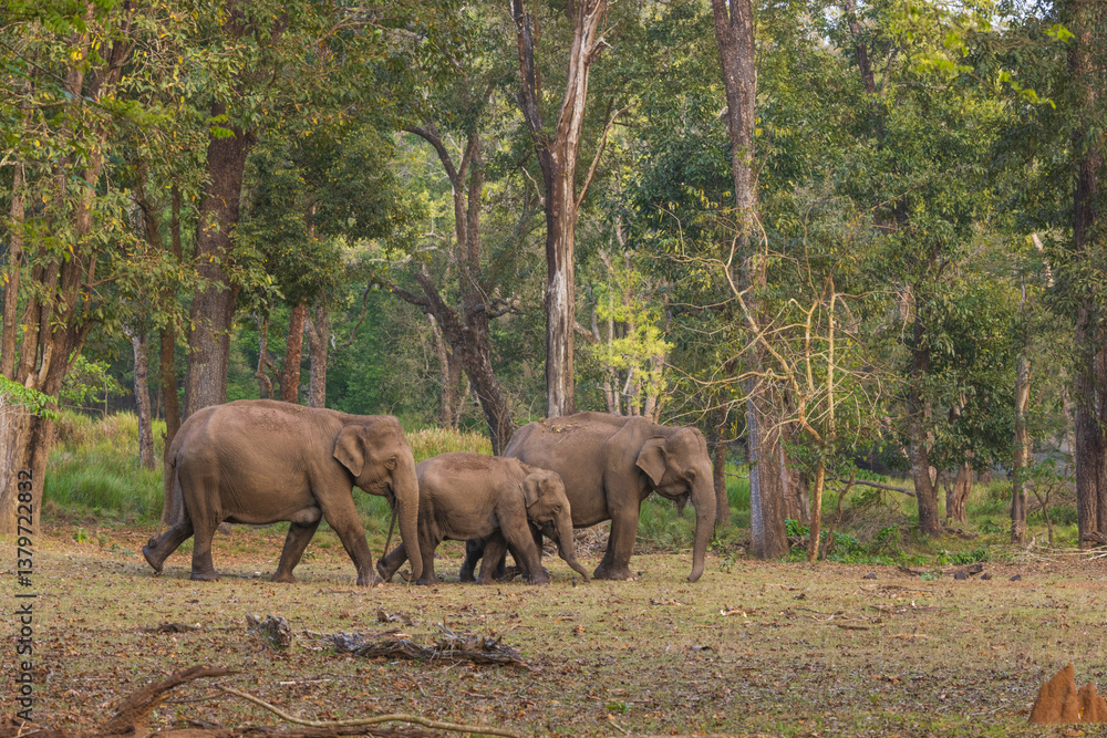 Fototapeta Wild Elephant Herd in Nagarhole National Park (Karnataka, India)