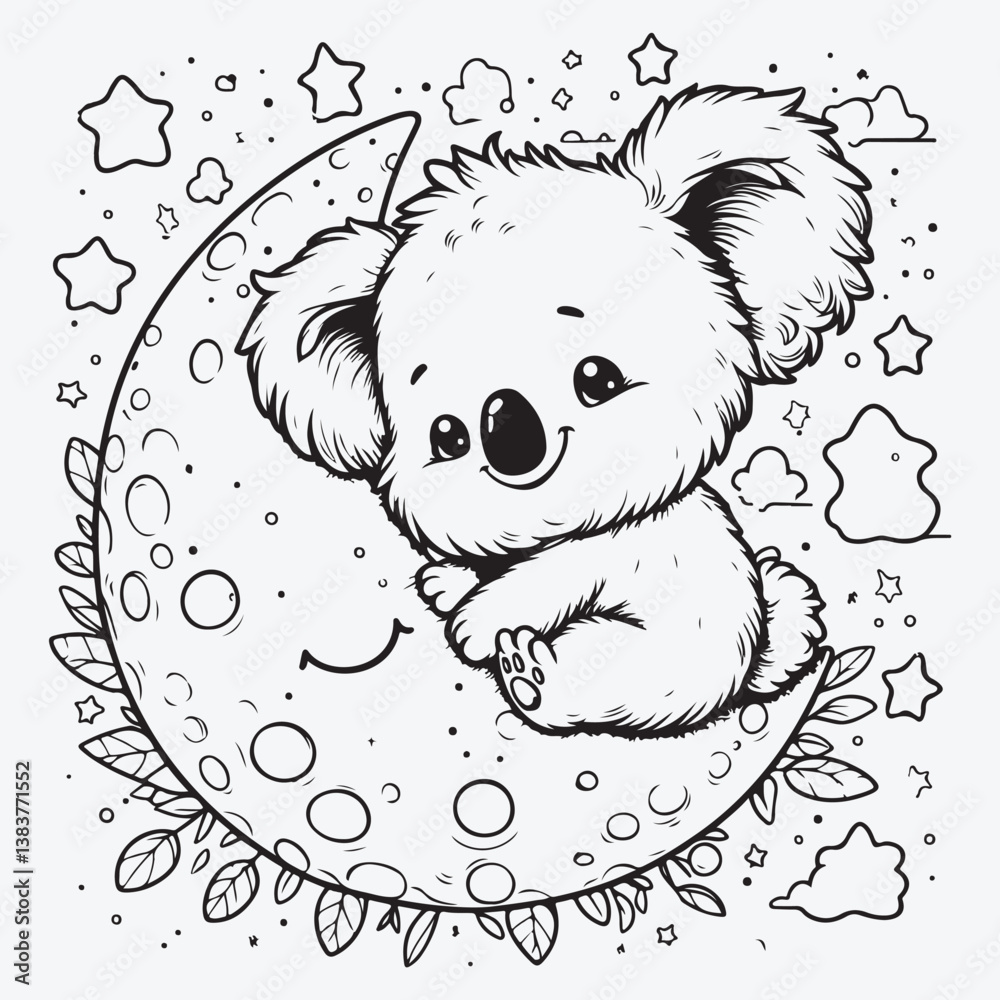 Fototapeta A Cute Koala on the moon stock illustration