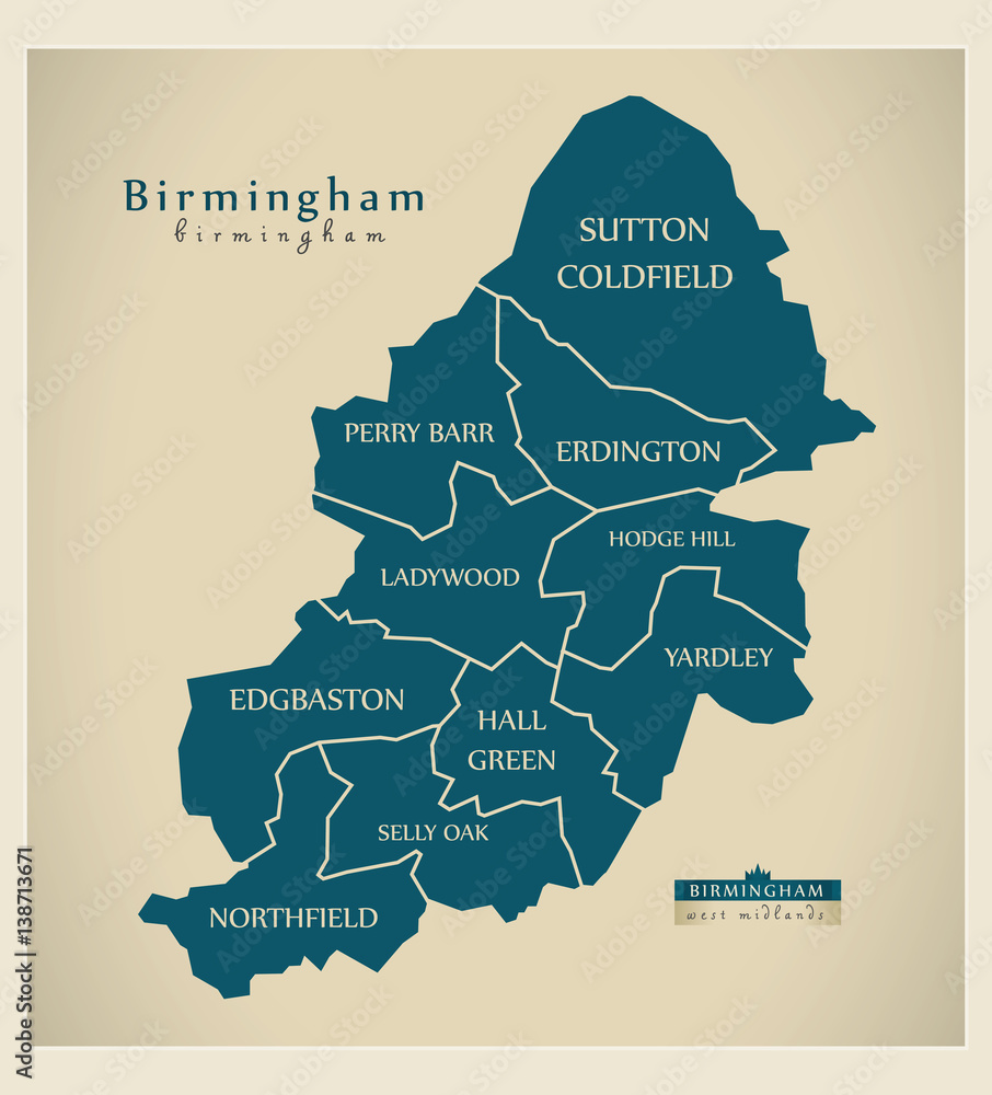 Fototapeta Modern City Map - Birmingham with labelled boroughs illustration