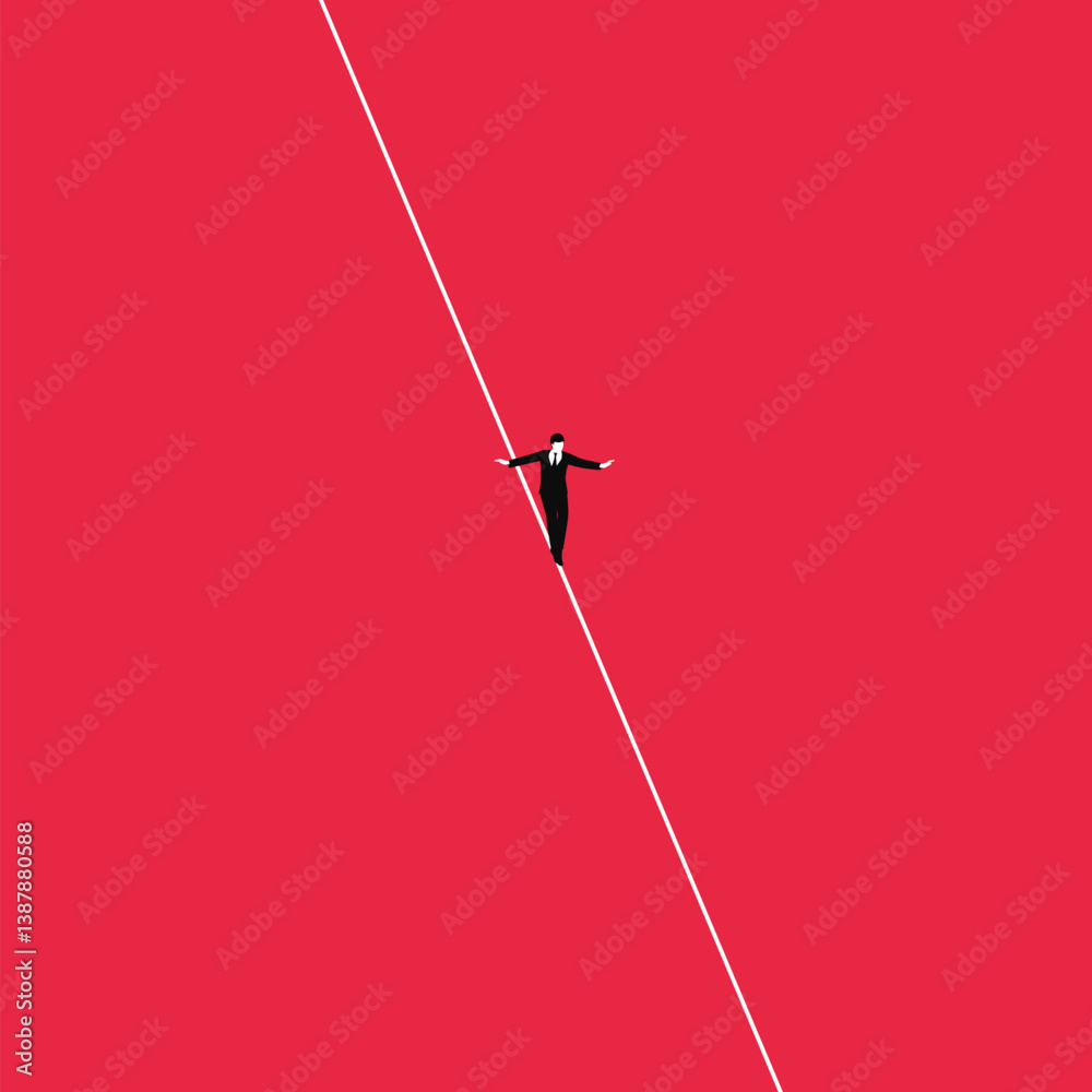 Fototapeta Isometric businessman tightrope walker is on the rope