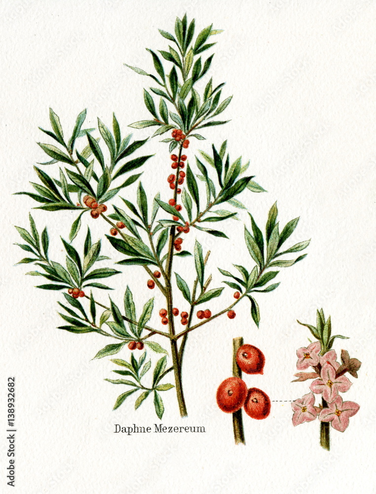 Fototapeta February daphne (Daphne mezereum) (from Meyers Lexikon, 1895, 7/568/569)