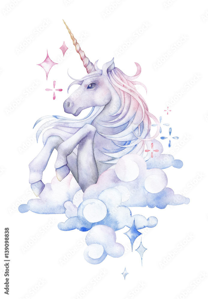 Fototapeta Cute watercolor unicorn