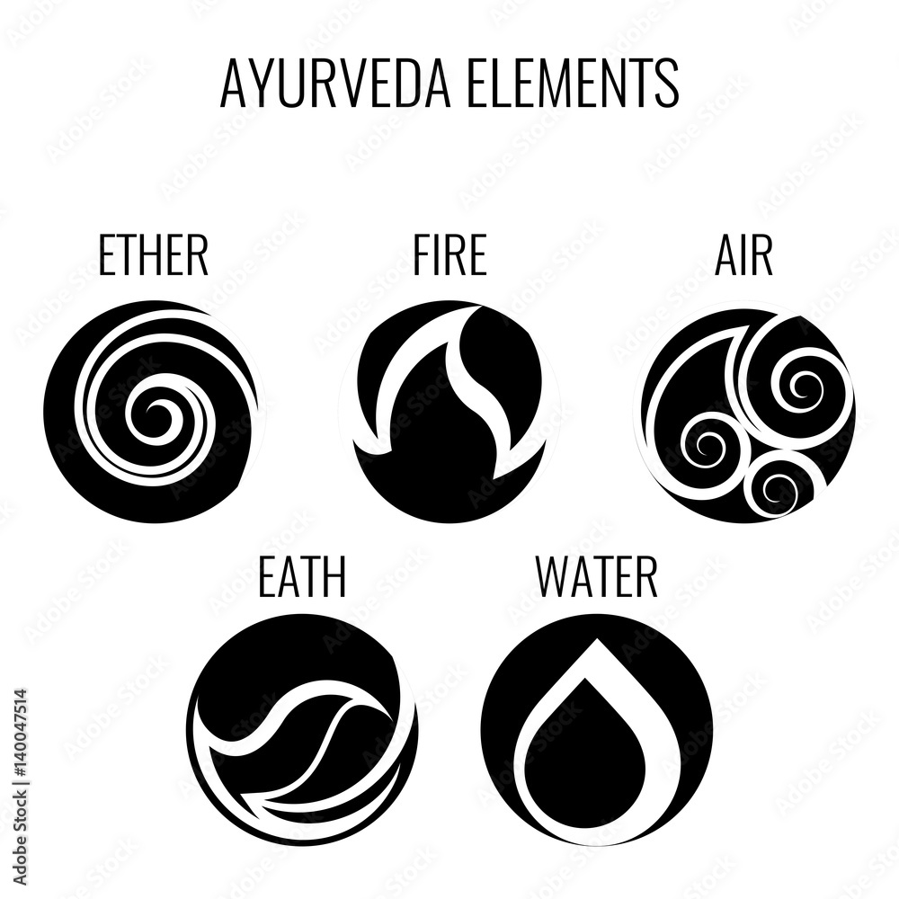 Fototapeta Ayurveda vector elements and doshas icons isolated on white