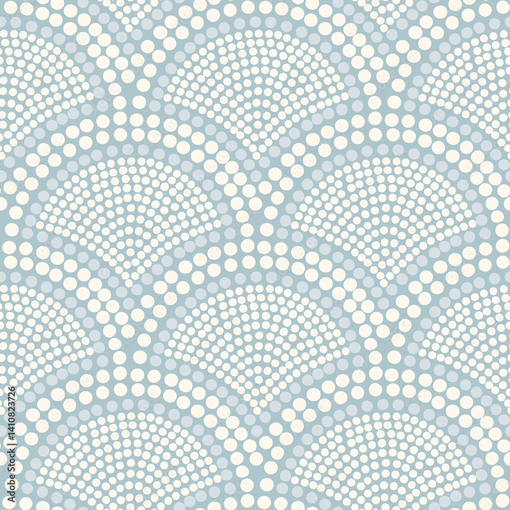 Fototapeta Elegant dotted scallop pattern with white fan shapes on light blue background
