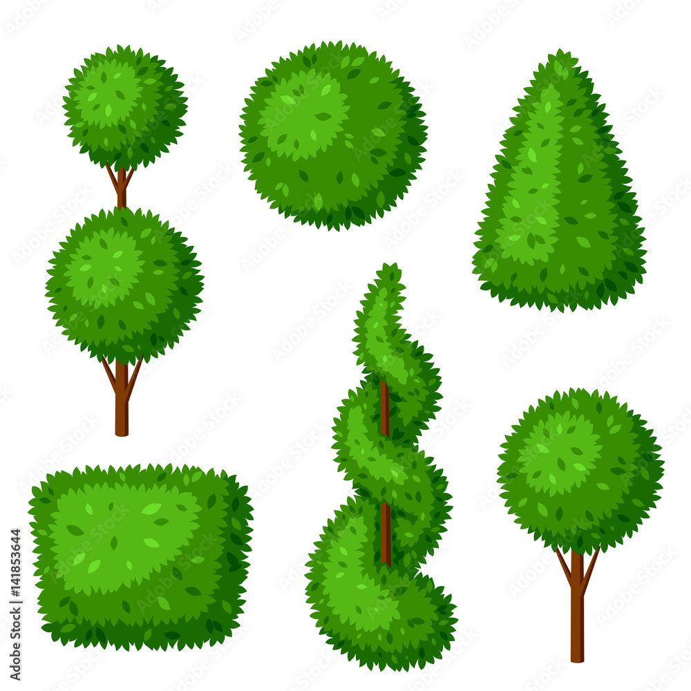Fototapeta Boxwood topiary garden plants. Set of decorative trees