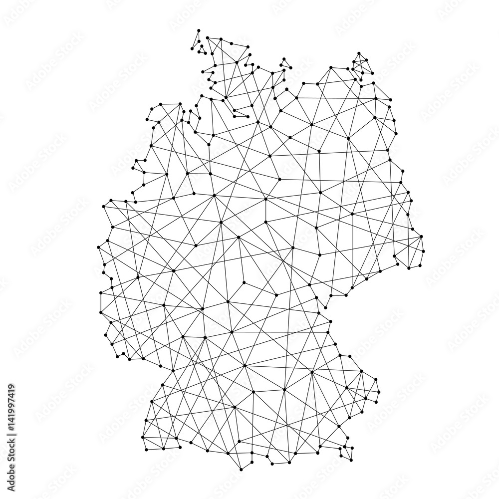 Fototapeta Map of Germany from polygonal black lines and dots of vector illustration