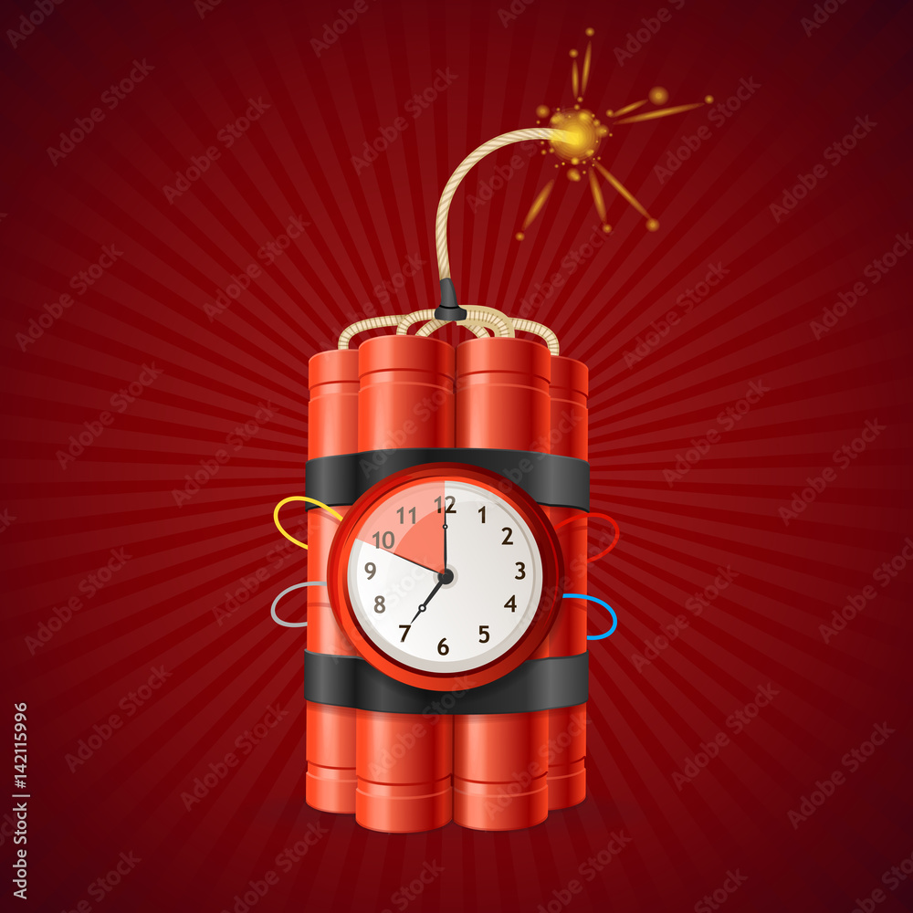 Fototapeta Detonate Dynamite Bomb and Timer Clock. Vector