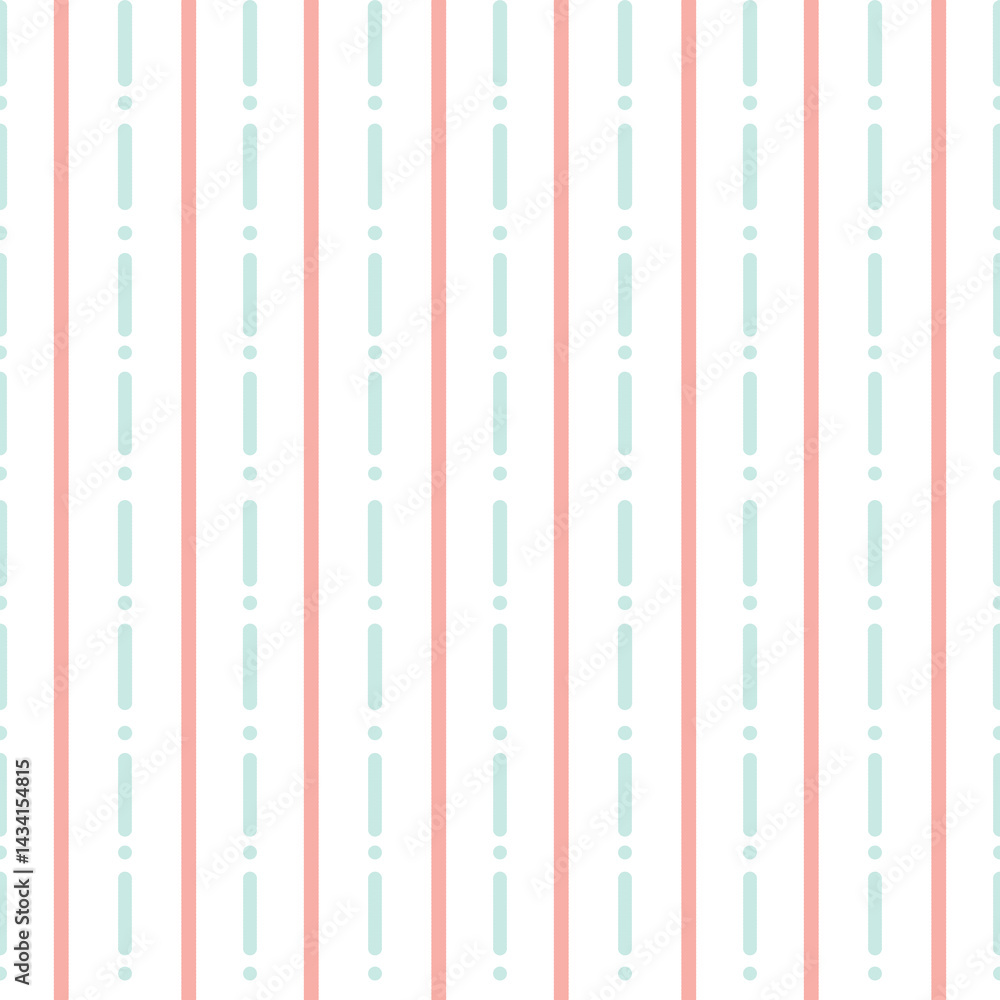Fototapeta Soft pastel striped pattern with vertical bands of light pink and delicate blue-grey dashes on a white background