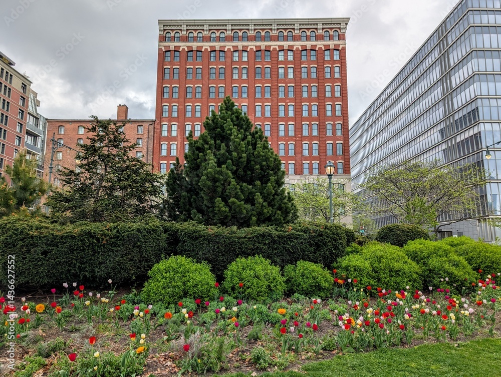Fototapeta Tribeca in spring on a rainy day, New York, NY - April 2025