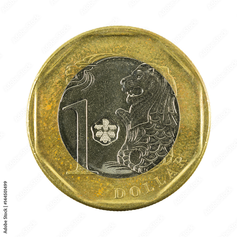 Fototapeta 1 singapore dollar coin (2013) obverse isolated on white background