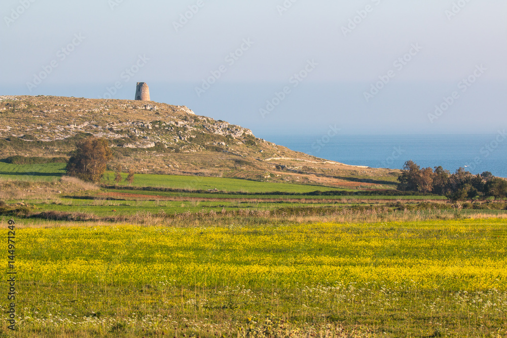 Fototapeta Watchtower near adriatic sea (San Emiliano tower), near Otranto in Salento, Ital