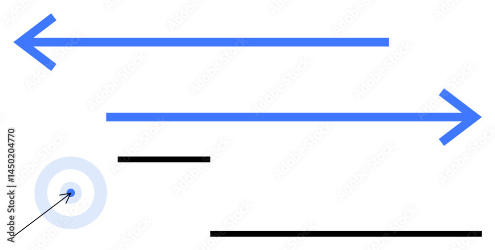 Fototapeta Two blue arrows pointing in opposite directions, black lines, and a target with an arrow